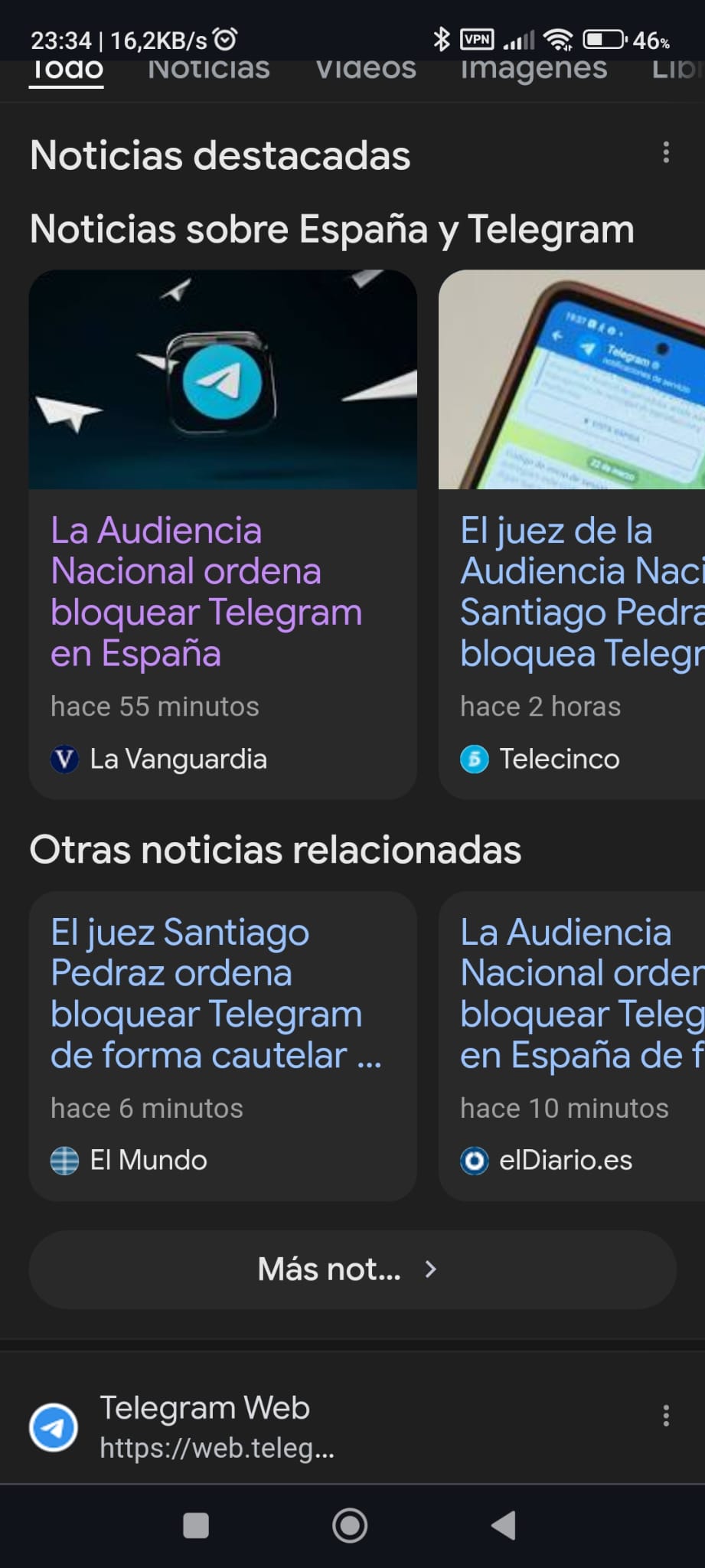 De haberse producido el bloqueo, tendrían que haber deshabilitado la conexión desde los equipos de los usuarios de los operadores a Telegram Web y Telegram Messenger, así como haber bloqueado la conexión de la aplicación de Telegram para Android y Apple.