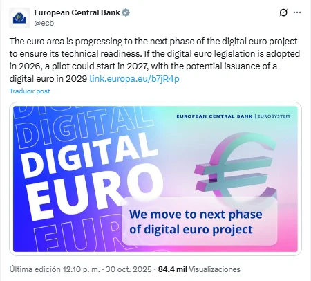 Pero el proyecto para desarrollar este nuevo método de pago, que tendrá exactamente el mismo valor que el dinero en efectivo, aún tiene camino por recorrer: el 30 de octubre de 2025 finalizó su etapa de preparación y comenzó la fase técnica, pero la institución financiera asegura que no podrá entrar en circulación hasta que las instituciones europeas aprueben el marco legislativo necesario. Mientras llega (o no), resolvemos varias preguntas con la información que tenemos hasta ahora.