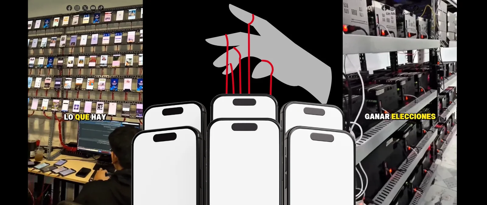Efraín García, tecnólogo, informático y maldito que nos ha prestado sus superpoderes, sostiene que “existen casos que demuestran que las granjas de móviles son herramientas reales utilizadas por actores estatales y/o privados para manipular la opinión pública y difundir desinformación a gran escala”. De hecho, investigadores de la Universidad de Toronto y de la Universidad de Massachusetts Amherst identificaron en un estudio de 2024 a las personas que operan estas granjas de teléfonos como “trabajadores dentro de la industria de la desinformación”.