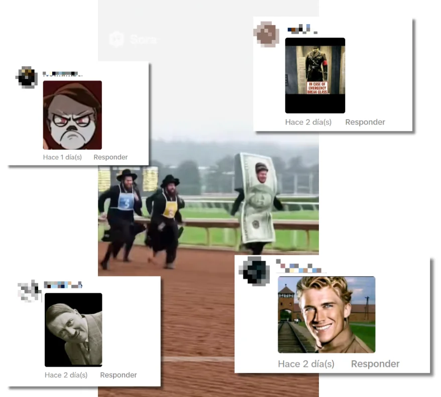 A los judíos se les muestra como personas avaras que únicamente persiguen la riqueza o la generación de dinero. En este caso, en los comentarios de estas publicaciones se pueden observar diferentes alusiones a Adolf Hitler y su discurso antisemita. Entre ellos se repiten especialmente los memes del dictador, una estrategia que utiliza el discurso ‘pop fascista’ para colar su mensaje evitando las restricciones de las plataformas.