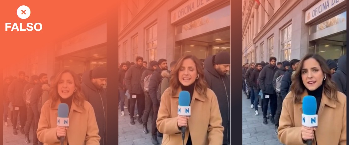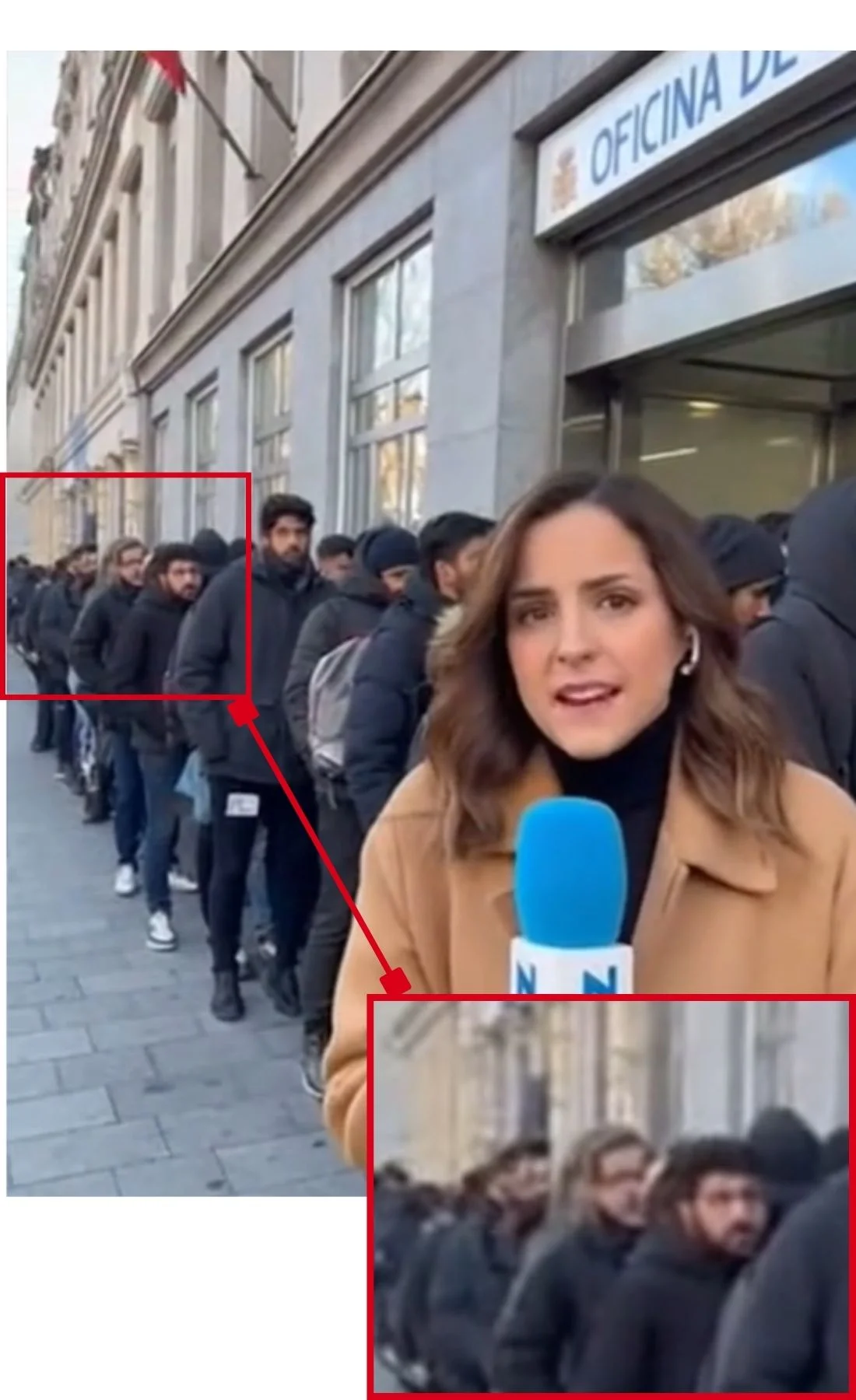 No, este vídeo supuestamente de una fila de "marroquíes y pakistaníes" en una oficina de extranjería esperando turno para entregar documentos no es real: tiene indicios de haber sido generado con IA