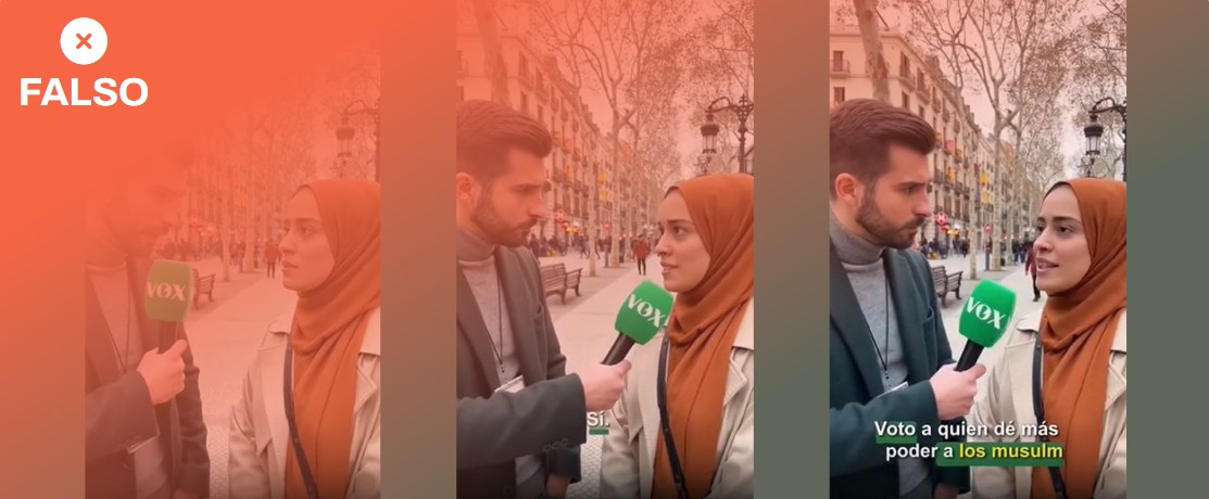 No, este vídeo de una mujer inmigrante y musulmana diciendo que si gana Vox las elecciones se vuelve a su país porque se acabarán "las ayudas" no es real: fue generado con IA