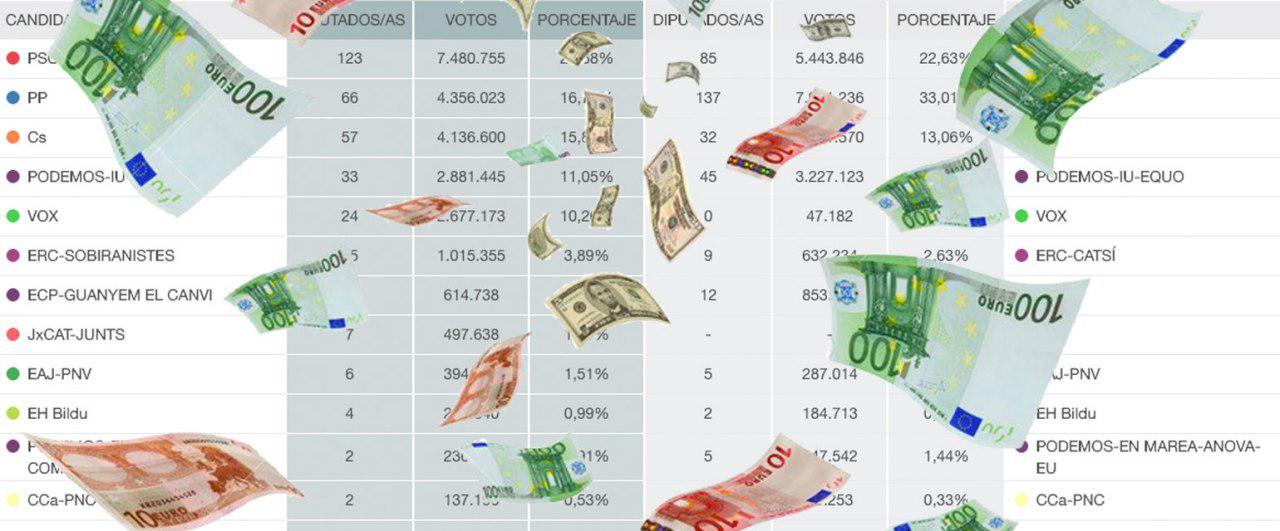 *Una primera versión de este artículo no había tenido en cuenta la modificación de 2016 de la Ley Orgánica del Régimen Electoral General. Por ello, se ha actualizado la información con los cambios que se producirían en las subvenciones en caso de que se produjera una repetición electoral.
