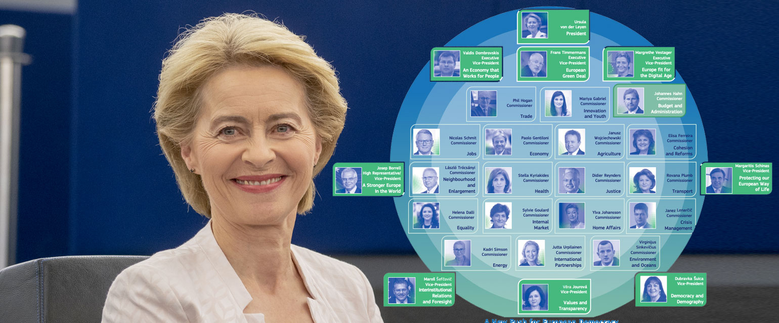 El proceso por el que se forma la Comisión no termina con la elección de la presidenta. Al contrario que en países como España, Von der Leyen no tiene la libertad de elegir a su equipo. Tras su elección como presidenta, la presidenta tiene que consultar con los estados miembros los posibles comisarios. En estas conversaciones cada país propone un candidato a comisario, excepto el país de origen de la presidenta (en este caso, Alemania), y negociar con ella cuál será la cartera que ocupará.