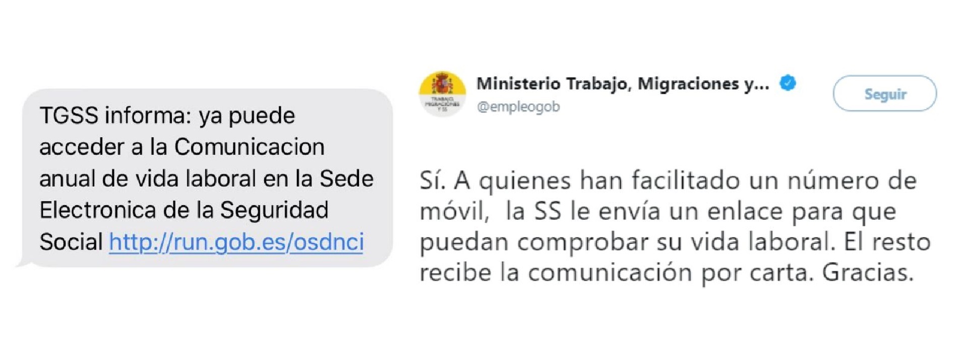 El SMS lo está enviando la Seguridad Social a quienes han facilitado un número de móvil, tal y como ha confirmado el Ministerio de Trabajo, Migraciones y Seguridad Social en Twitter.