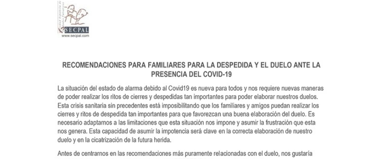 Por esto motivos, la Sociedad Española de Cuidados Paliativos ha publicado una serie de recomendaciones para la despedida y el duelo en los tiempos del COVID-19. Os la resumimos: