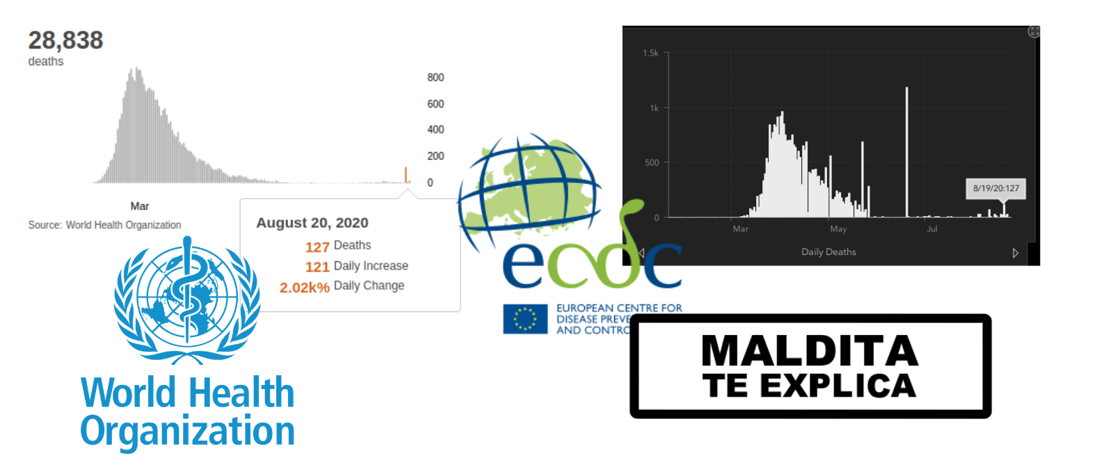 El dato de estos organismos internacionales proviene de una malinterpretación de los datos publicados por España, ya que el 18 de agosto se incluyeron fallecimientos antiguos en el cómputo global.