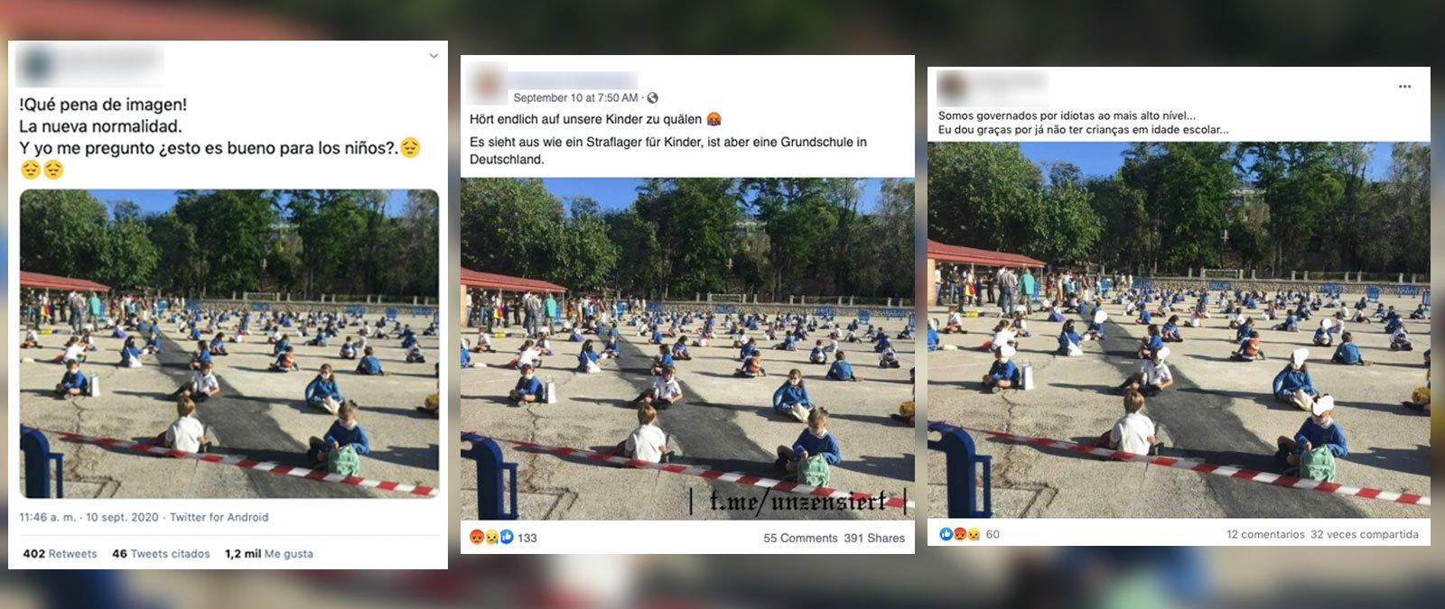 Como decimos, la foto también ha circulado como si hubiera sido tomada en otros países. Por ejemplo, en esta publicación de Facebook se decía que era una escuela de primaria de Alemania. De hecho, la sección de verificación de la agencia alemana DPA ya ha desmentido que se trate de Alemania.