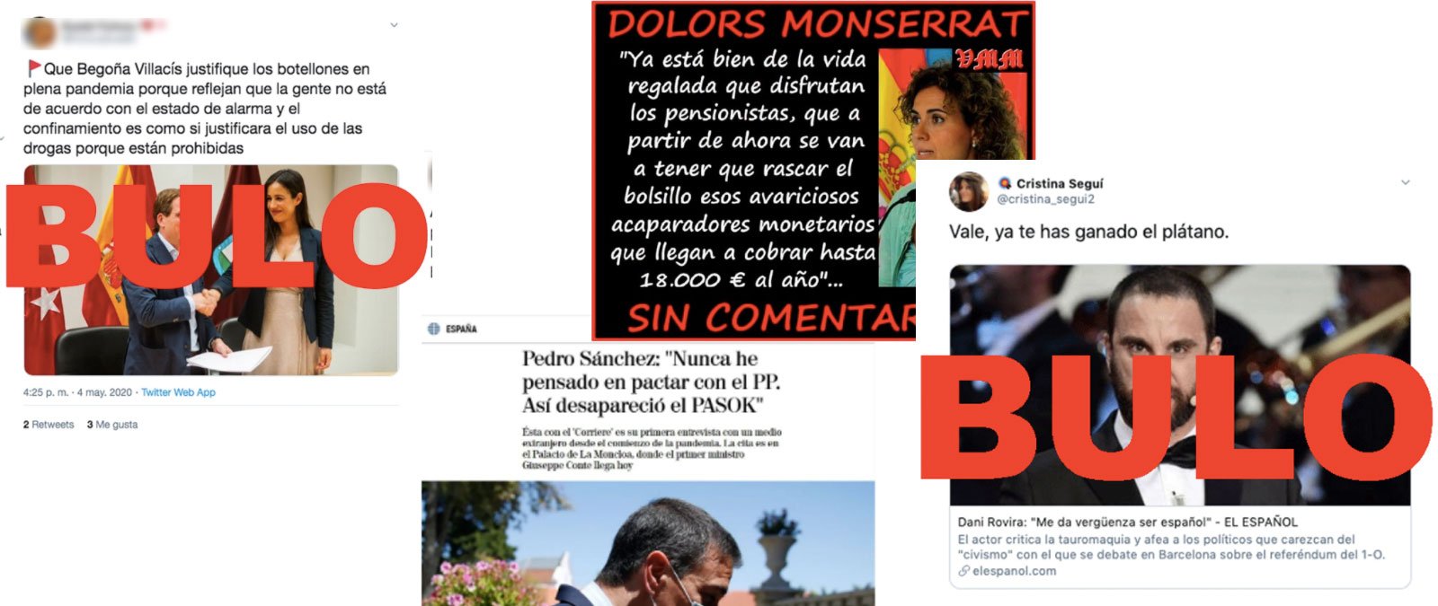 Estos bulos no sólo afectan a políticos, ya que el actor Dani Rovira fue objeto de uno en 2019. En concreto, el periódico El Español publicó un artículo en el que aseguraban que Rovira había dicho en una entrevista que le daba "vergüenza ser español". La realidad es que, en una entrevista concedida al programa Te doy mi palabra, de Onda Cero, Rovira respondió lo siguiente cuando fue preguntado por su opinión sobre la tauromaquia: "Pertenecer al único o a uno de los pocos países de Europa donde todavía se celebran este tipo de barbaridades es una de estas cosas que como que te dan un poco de incluso vergüencita, ¿no? " (puedes escucharlo aquí a partir del minuto 8:46).