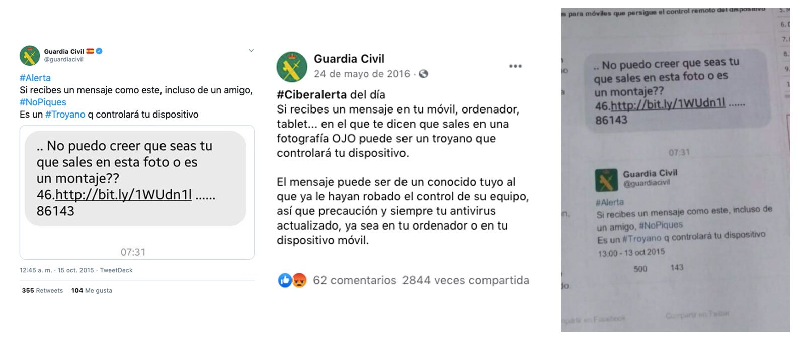 Unos meses después, en mayo y junio de 2016, la Guardia Civil volvió a alertar de ello a través de sus perfiles oficiales de Facebook y Twitter, respectivamente.