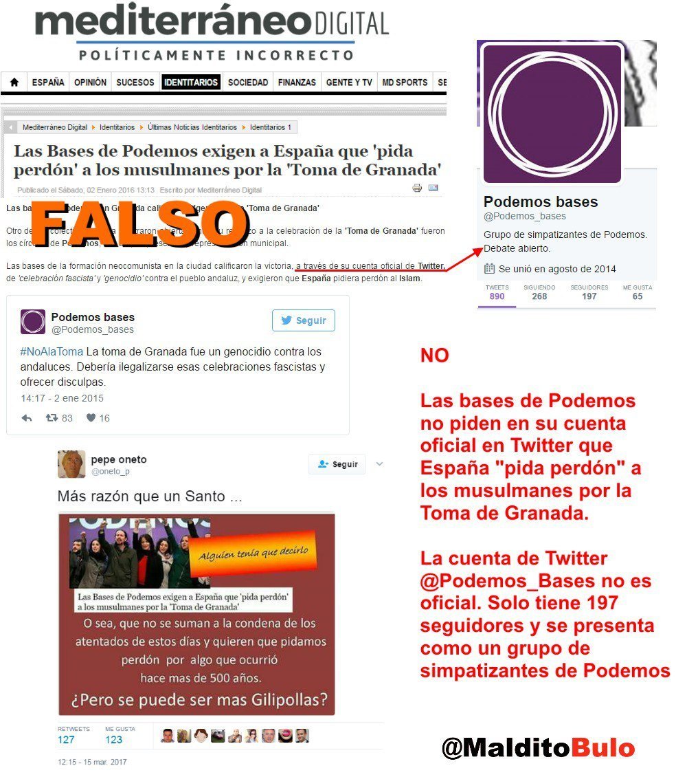 No, las "bases de Podemos" no han exigido que se pida perdón por la toma de Granada
