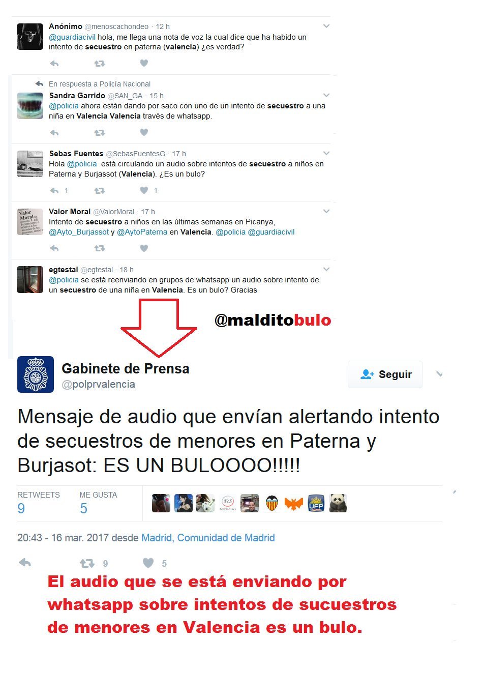 No, el audio que alerta de secuestro de menores en Paterna y Burjassot no es real