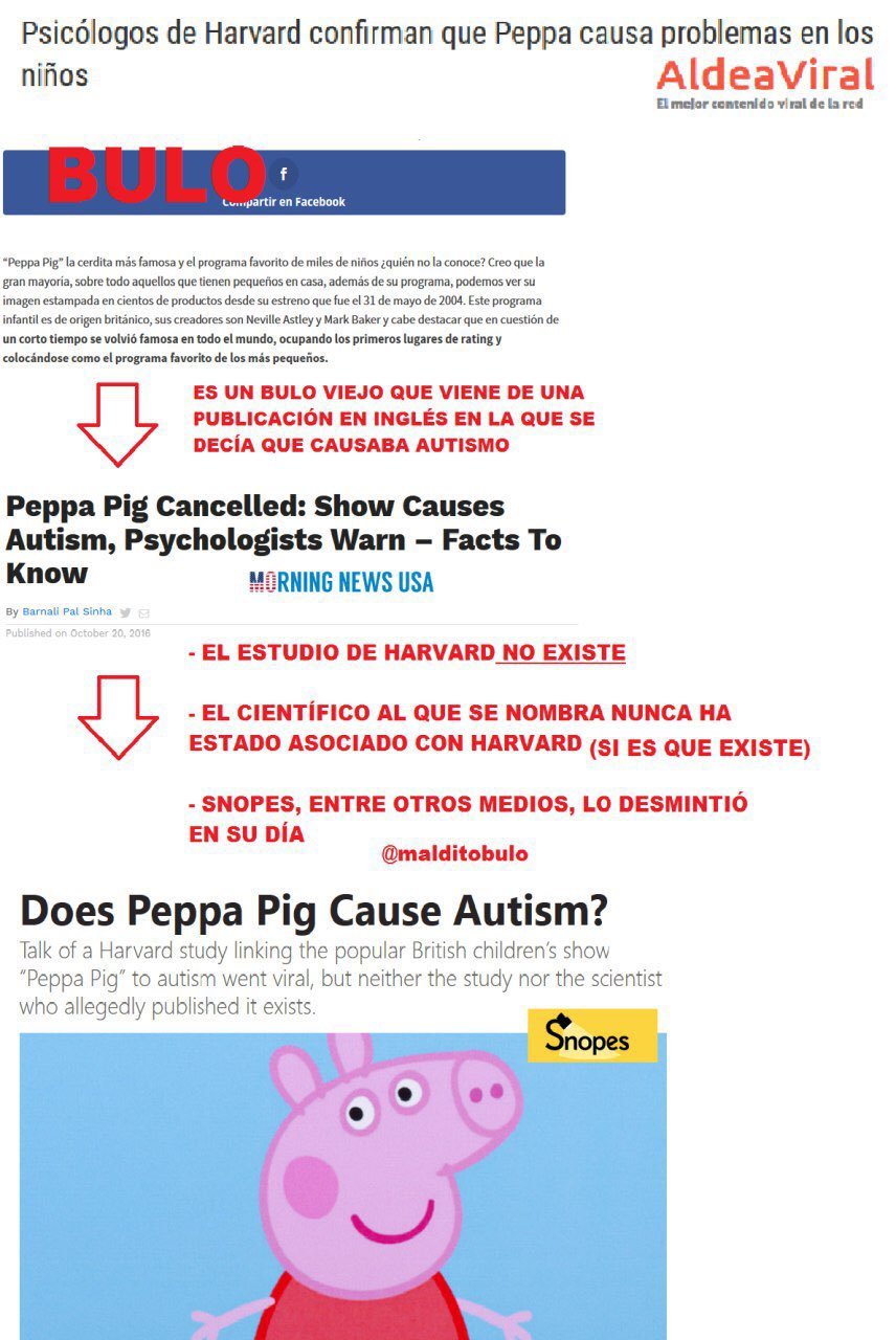 Aquí Snopes.com cuenta más sobre el bulo: https://www.snopes.com/peppa-pig-causes-autism/