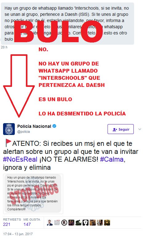 No, no ha un grupo de Whatsapp llamado "Interschools" que pertenezca al Daesh. Lo ha desmentido la Policía Nacional.