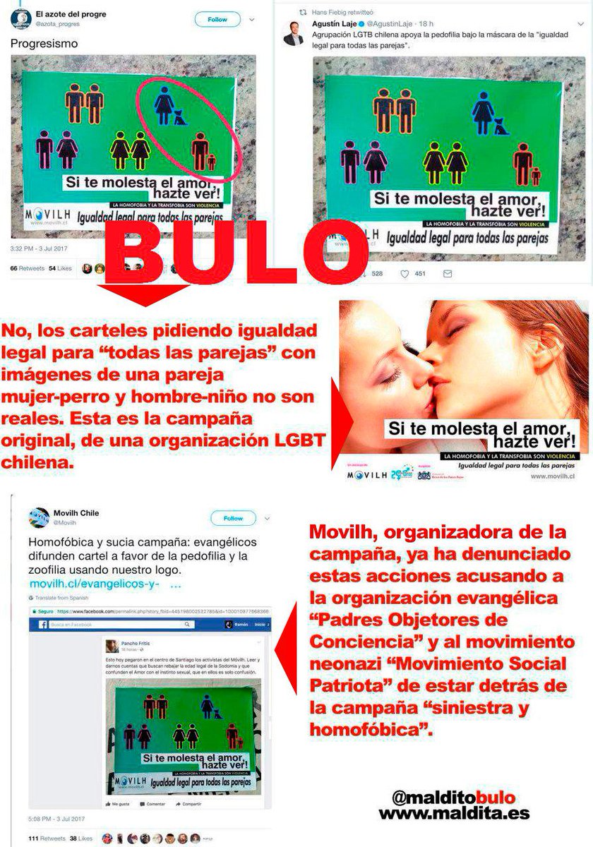 «Agrupaciones LGBT publican carteles pidiendo igualdad legal para todos con parejas "mujer- perro" y "hombre-niño"»