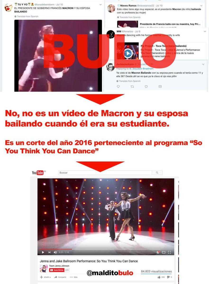 No. Macron y su mujer no salen bailando en un vídeo de cuando ella era su profesora.