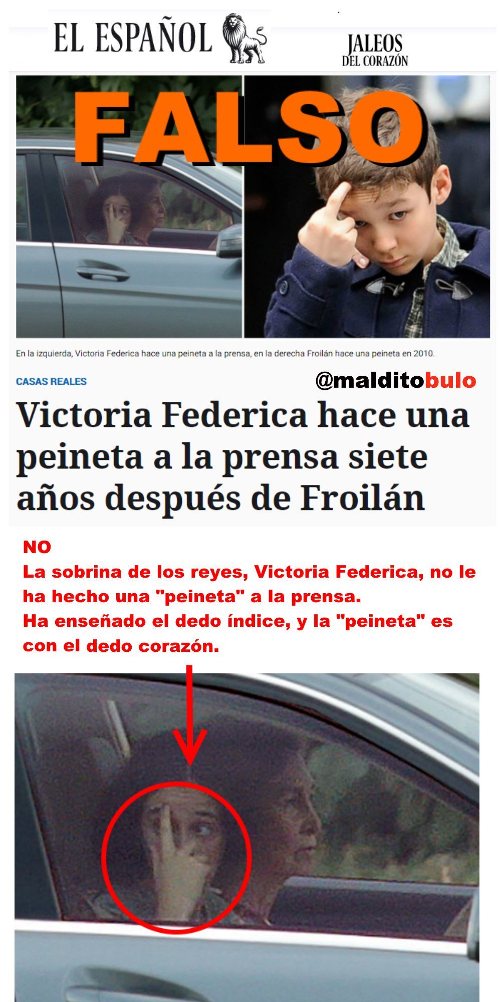 La sobrina de los reyes, Victoria Federica, no ha hecho una peineta a la prensa. Ha enseñado el dedo índice, y la peineta se hace con el dedo corazón.