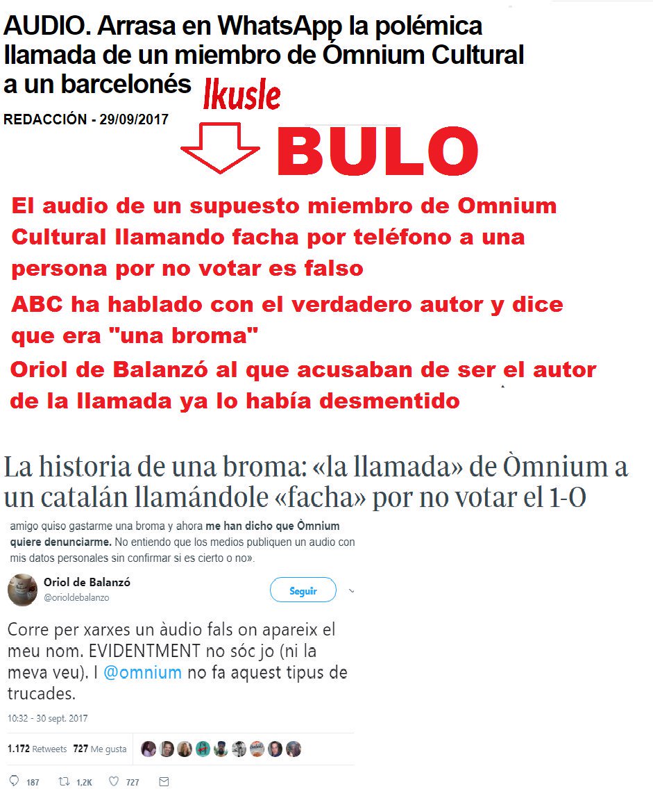 - El audio de un supuesto miembro de Ómnium Cultural llamando facha por teléfono a una persona por no votar el 1O es falso.