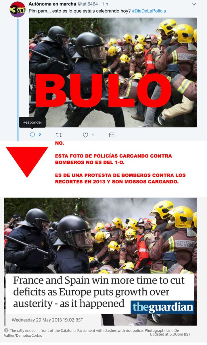 No, la foto de policías contra bomberos no es del 1O