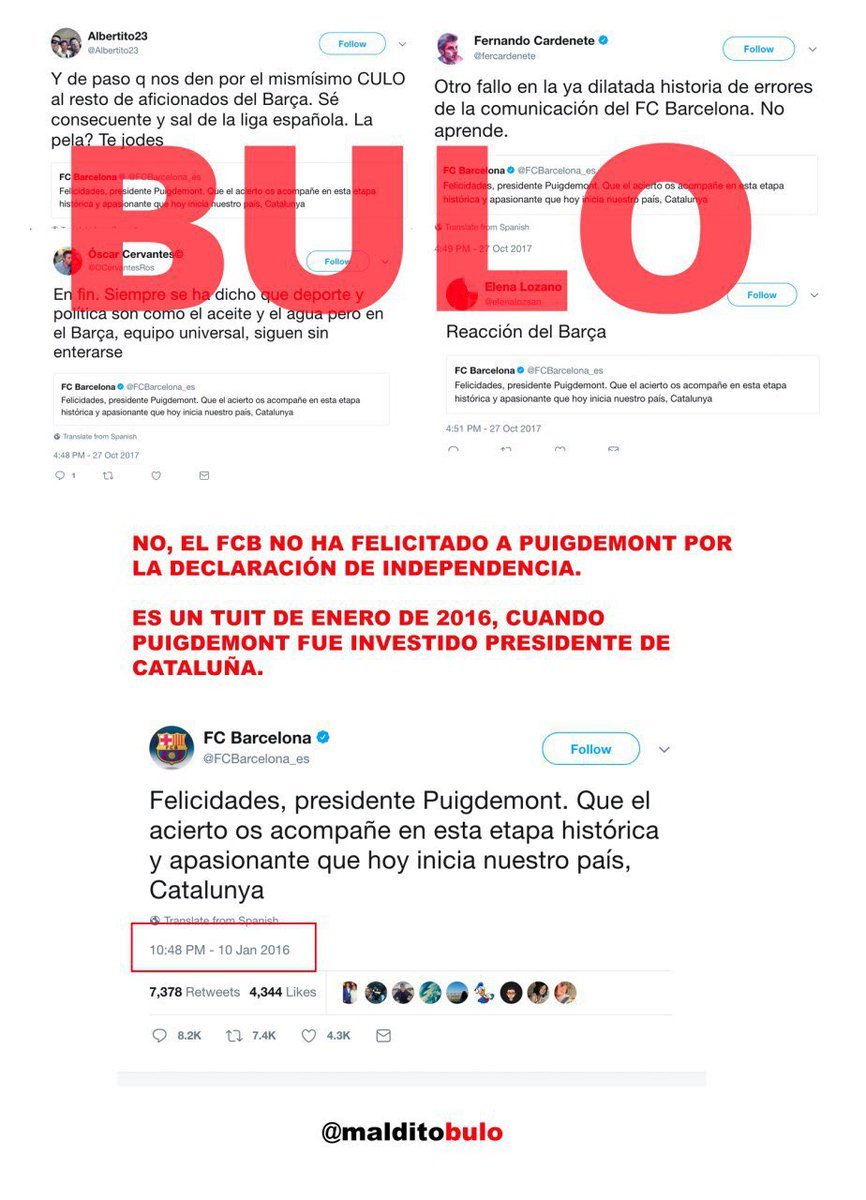 No, el Barça no ha felicitado a Puigdemont por la declaración de independencia