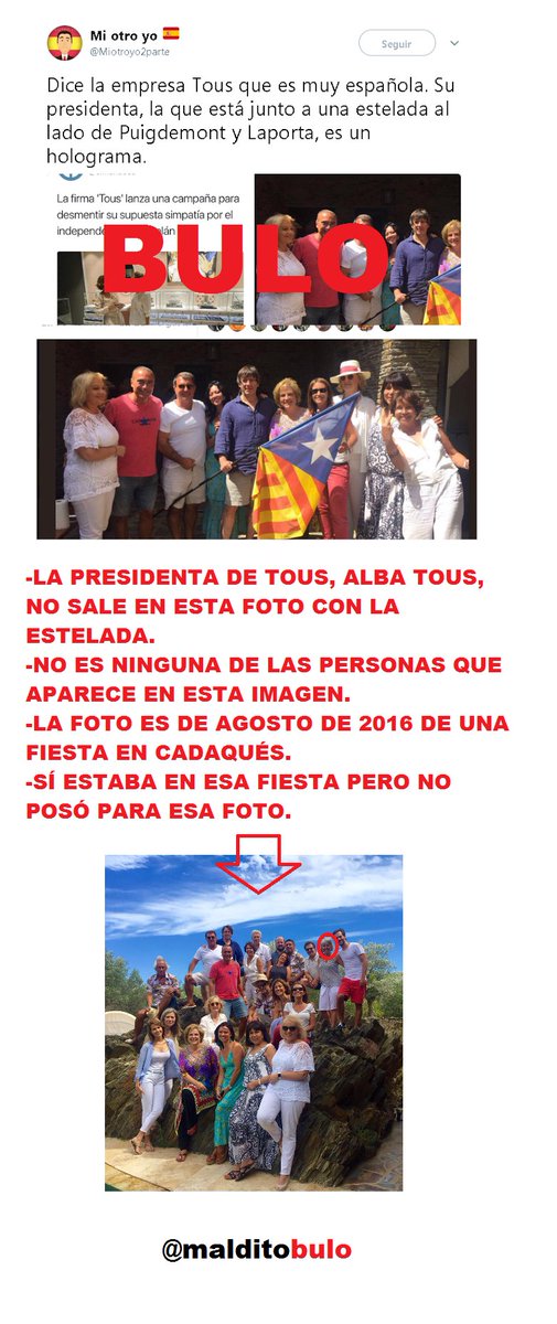 Dice la empresa Tous que es muy española. Su presidenta, la que está junto a una estelada al lado de Puigdemont y Laporta, es un holograma.