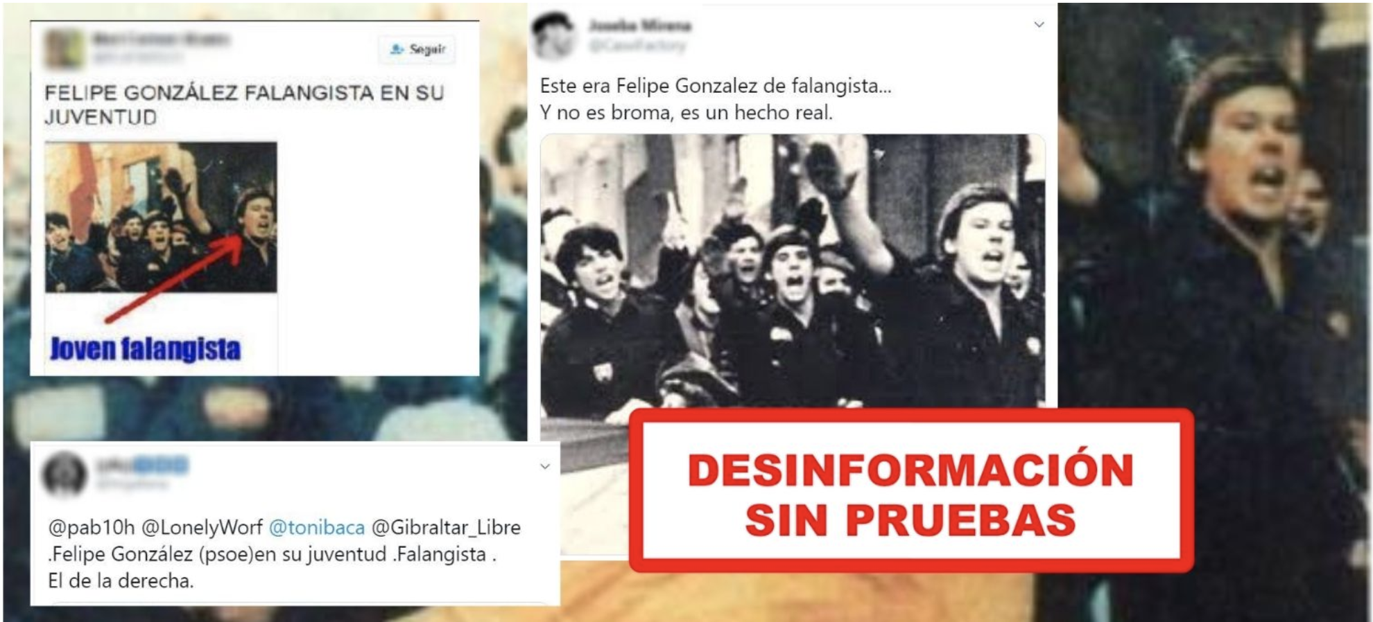 No hay ninguna prueba de que sea Felipe González el que va vestido de falangista y hace el saludo fascista más allá del parecido físico.