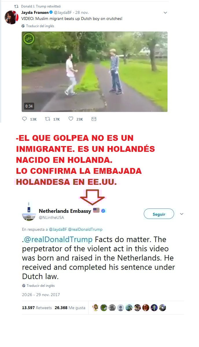 No, el vídeo que retuiteó Trump no es de un inmigrante golpeando a un chico con muletas. Es un holandés nacido en Holanda.