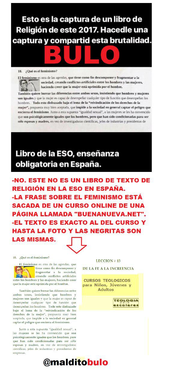 Fragmento encontrado en un libro de religión de la ESO en España: