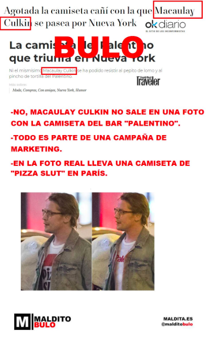 No, Macaulay Culkin no sale en una foto con la camiseta del bar "Palentino"