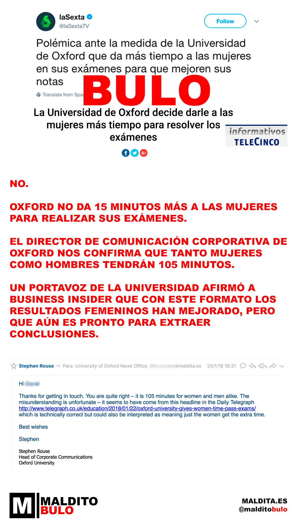 El Director de Comunicación Corporativa de Oxford nos confirma que tanto mujeres como hombres tendrán 105 minutos.