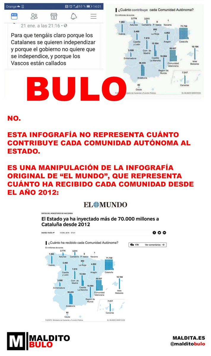 Es una manipulación de la infografía original de 'El Mundo', que representa cuánto ha recibido cada comunidad desde el año 2012.