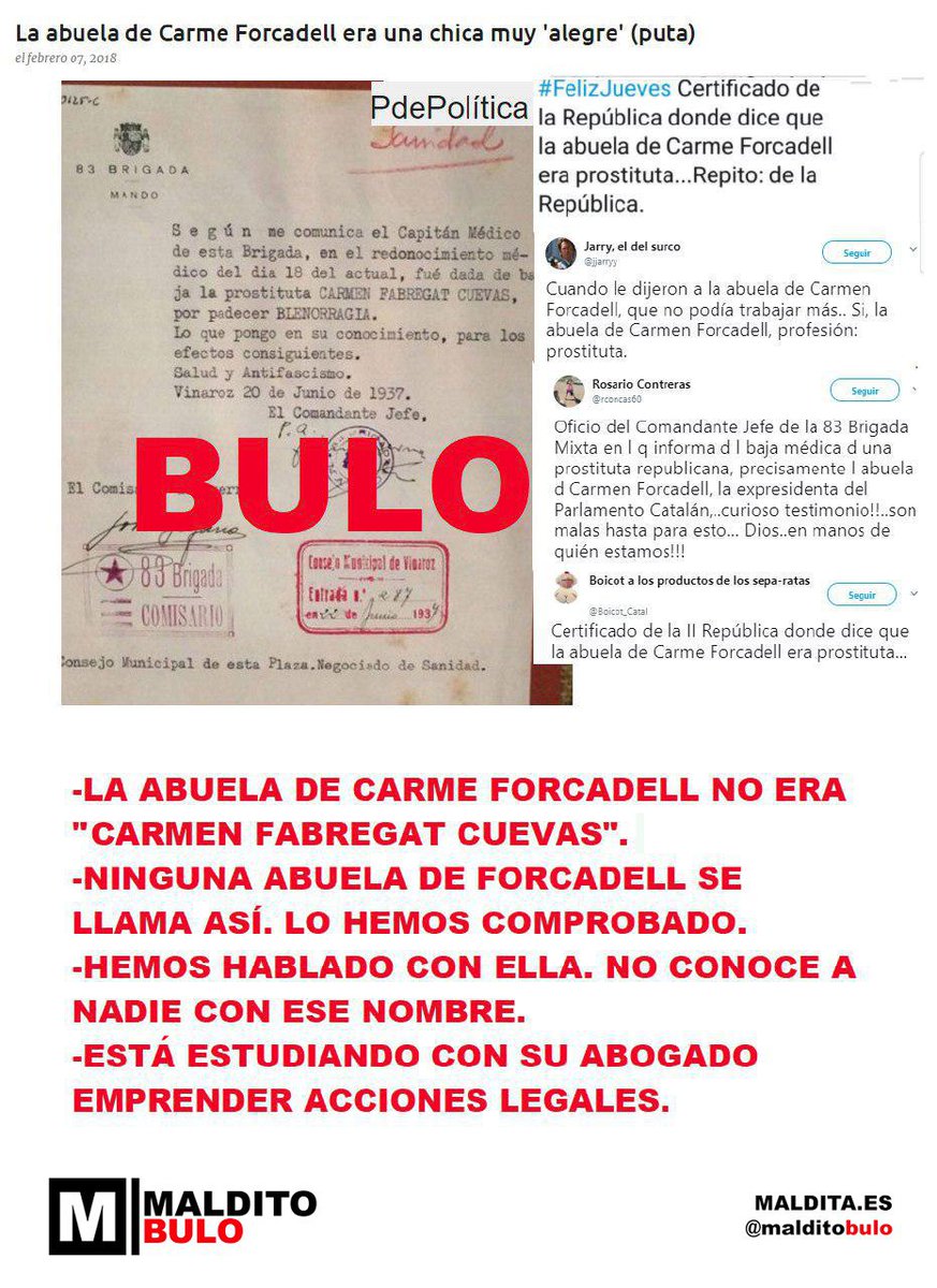 - Ninguna abuela de Forcadell se llama así. Lo hemos comprobado.