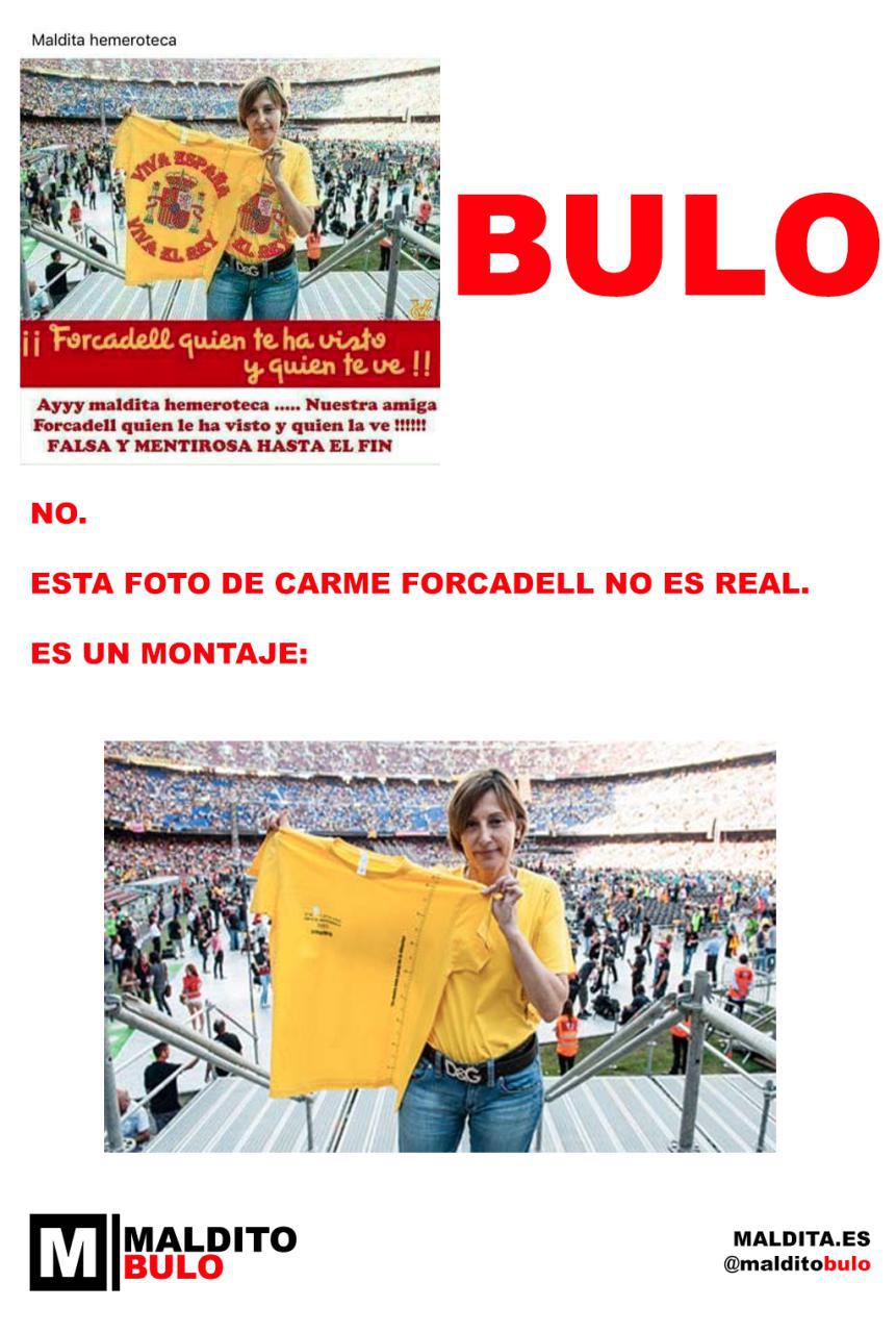 No, la foto de Carme Forcadell con la camiseta de Viva España no es real