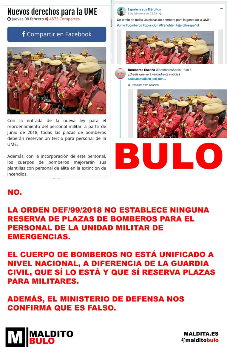 No, no es cierto que un tercio de las plazas de bomberos tengan que estar reservadas para personal de la UME