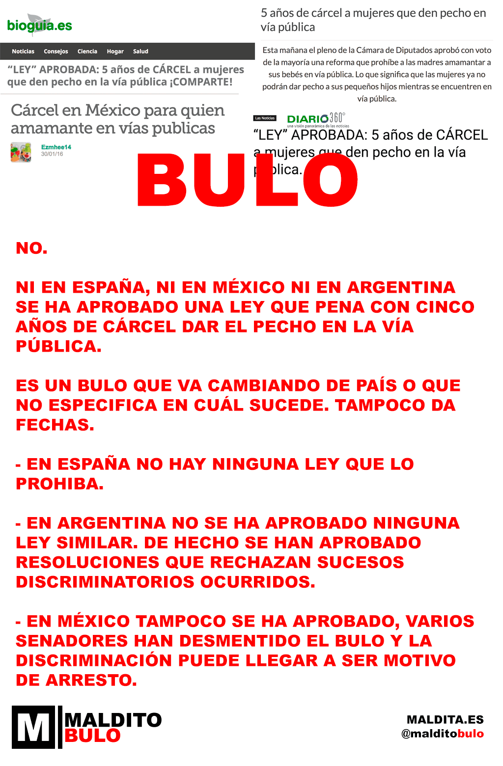 No, dar el pecho en la vía pública no está penado con cinco años de cárcel ni en España, ni en Argentina, ni en México