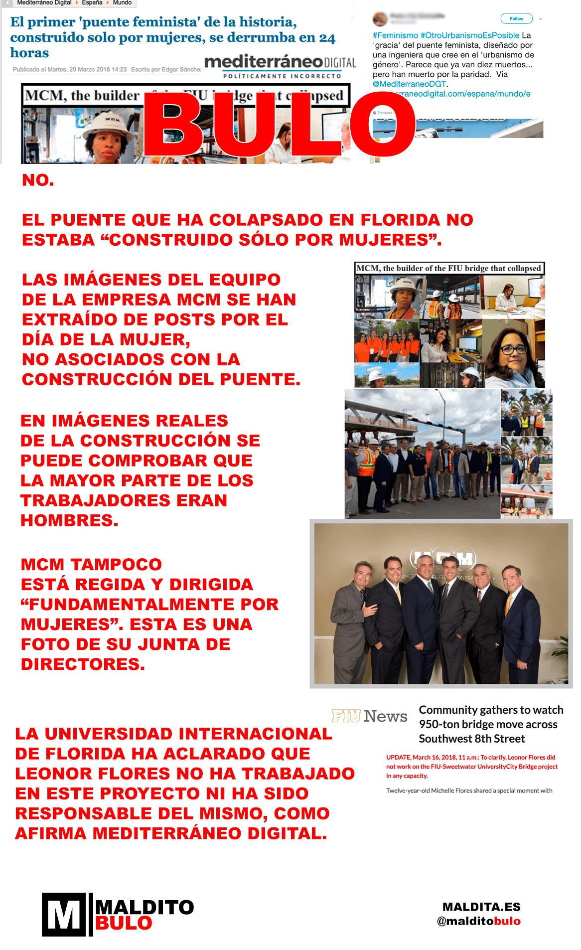 No, el puente que ha colapsado en Florida no estaba construido sólo por mujeres