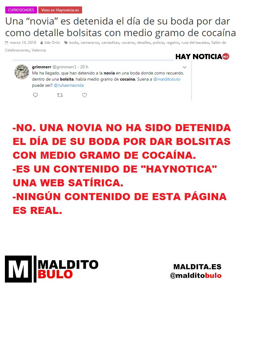 No, una novia no ha sido detenida por regalar en su boda bolsitas de cocaína