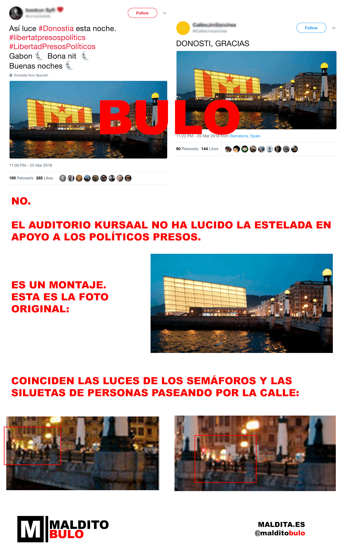 «El auditorio Kursaal ha lucido la estelada en apoyo a los políticos catalanes presos»