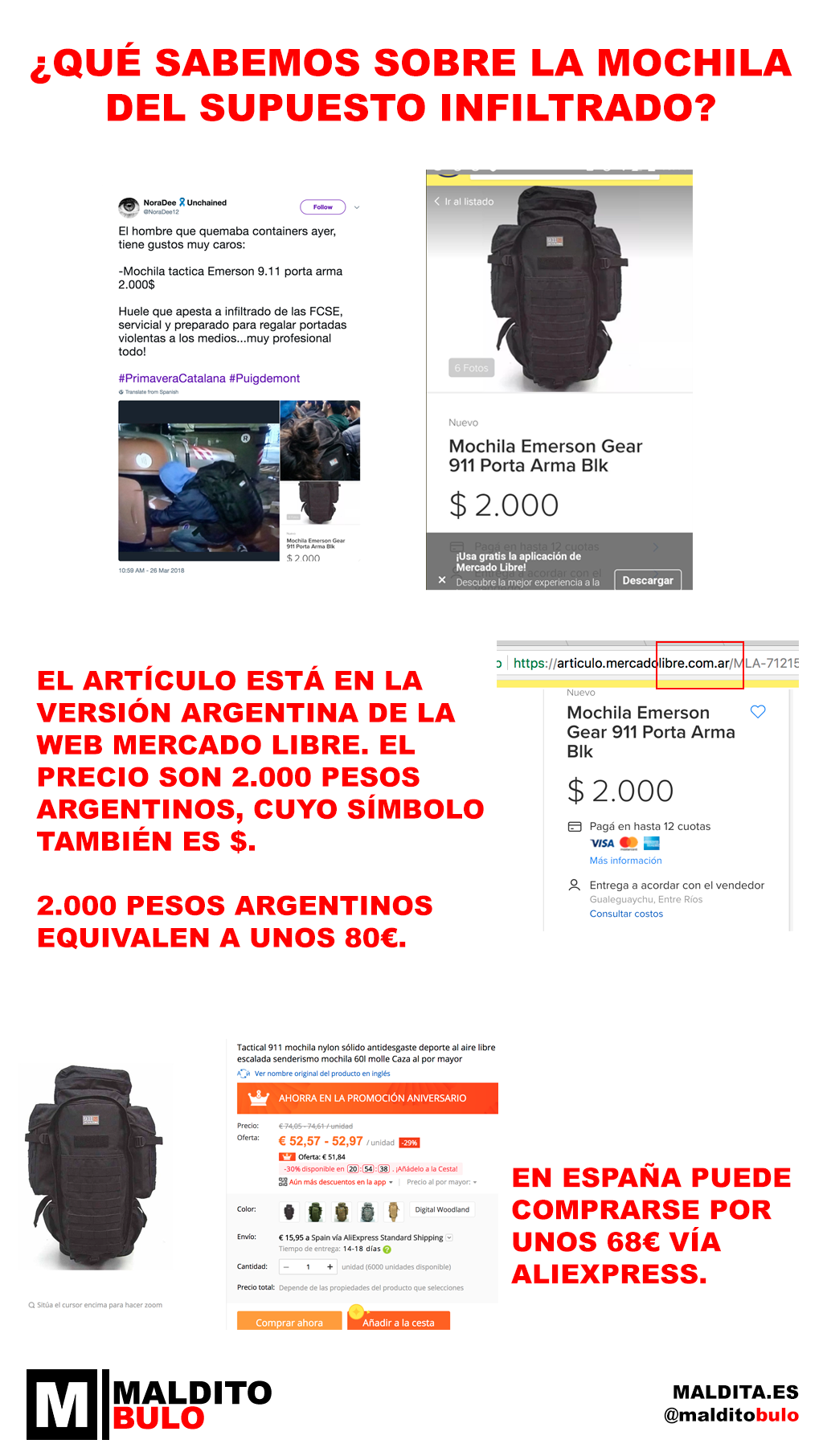 ¿Qué sabemos de la mochila del supuesto "infiltrado" en los disturbios de Barcelona el domingo 25?