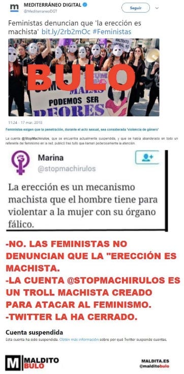 - La cuenta @stopmachirulos es un troll machista creado para atacar al feminismo.