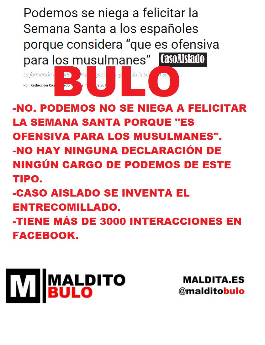 No, Podemos no se ha negado a felicitar la Semana Santa porque "es ofensiva para los musulmanes"