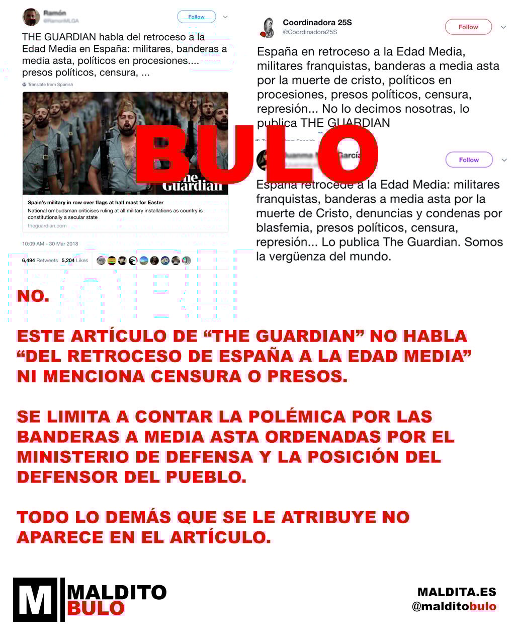 No, el artículo de The Guardian no habla "del retroceso de España a la Edad Media" ni menciona presos o censura
