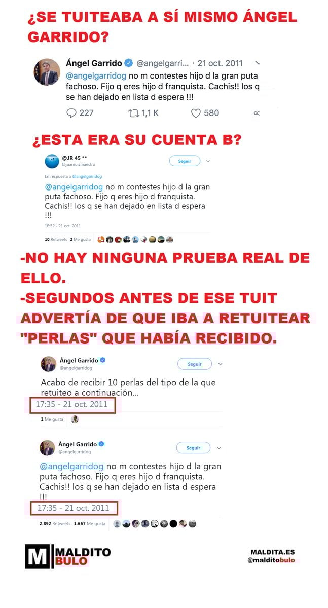 No, no hay pruebas de que Ángel Garrido se insultase a sí mismo desde su propia cuenta de Twitter creyendo que lo hacía desde una falsa