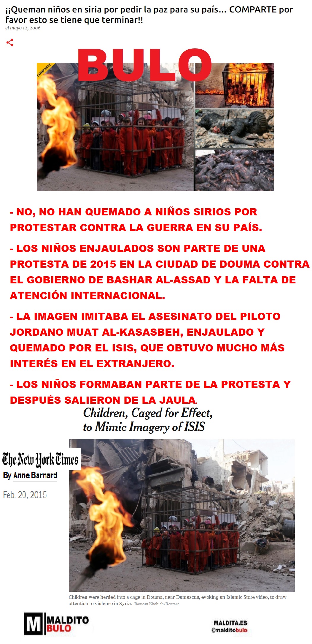 No, no han enjaulado y quemado vivos a unos niños en Siria por pedir la paz en su país