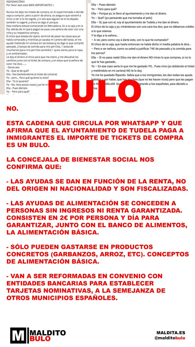 - Esta cadena de WhatsApp que afirma que el Ayuntamiento de Tudela paga a los inmigrantes el importe de tickets de compra sin importar si son suyos o lo que compran es un bulo.