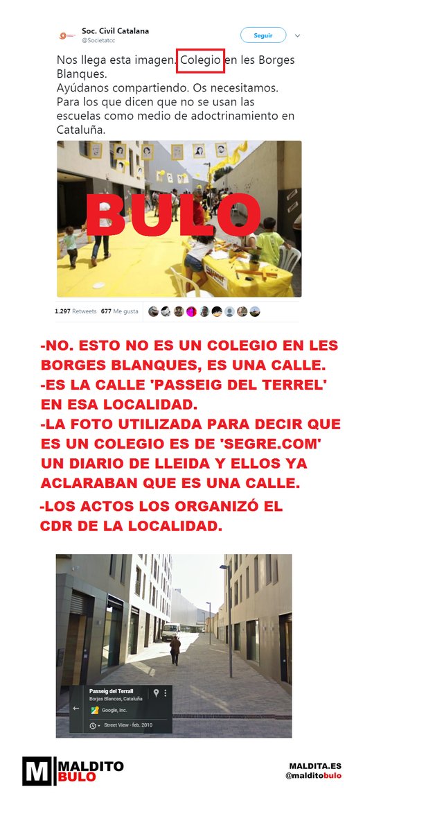 No, no es cierto que un colegio de Les Borges Blanques haya organizado un acto por los presos catalanes