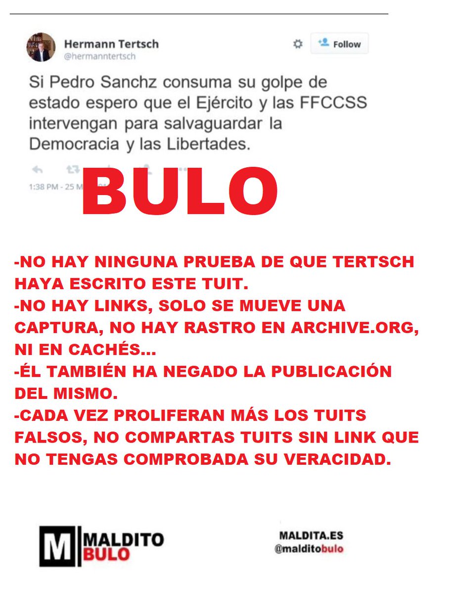 No, no hay pruebas de que el tuit de Tertsch pidiendo que el Ejército y las Fuerzas de Seguridad intervengan por la moción de censura de Pedro Sánchez sea real