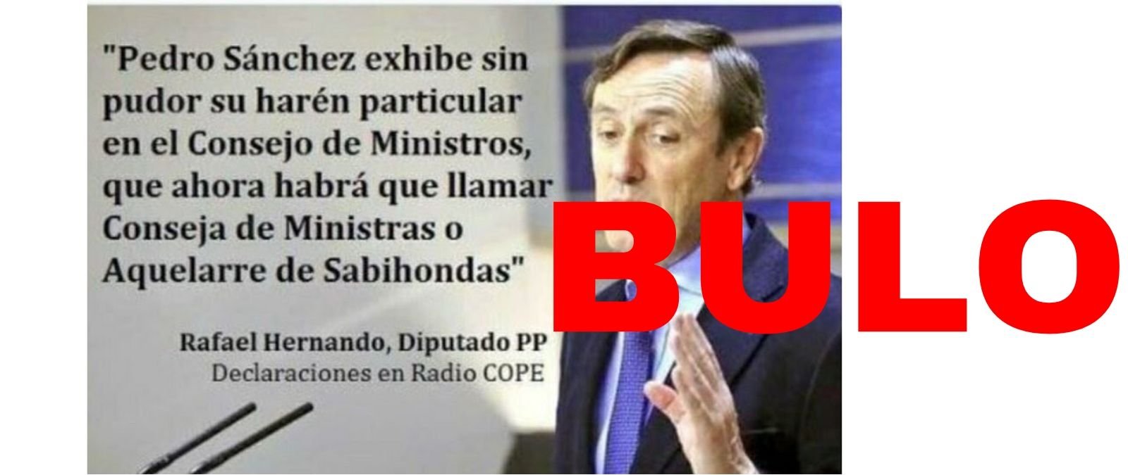 Vuelve a circular una imagen de Rafael Hernando con el siguiente texto: "Pedro Sánchez exhibe sin pudor su harén particular en el Consejo de Ministros, que ahora habrá que llamar Conseja de Ministras o Aquellare de Sabiondas" Rafael Hernando, Diputado PP Declaraciones en Radio COPE. Es un bulo que ya desmentimos en junio de 2018.