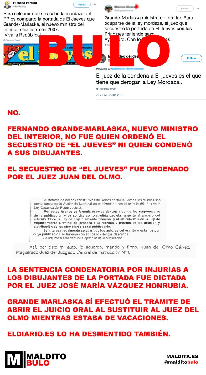 - Fernando Grande-Marlaska, nuevo Ministro del Interior, no fue quien ordenó el secuestro de El Jueves ni quien condenó a sus dibujantes.