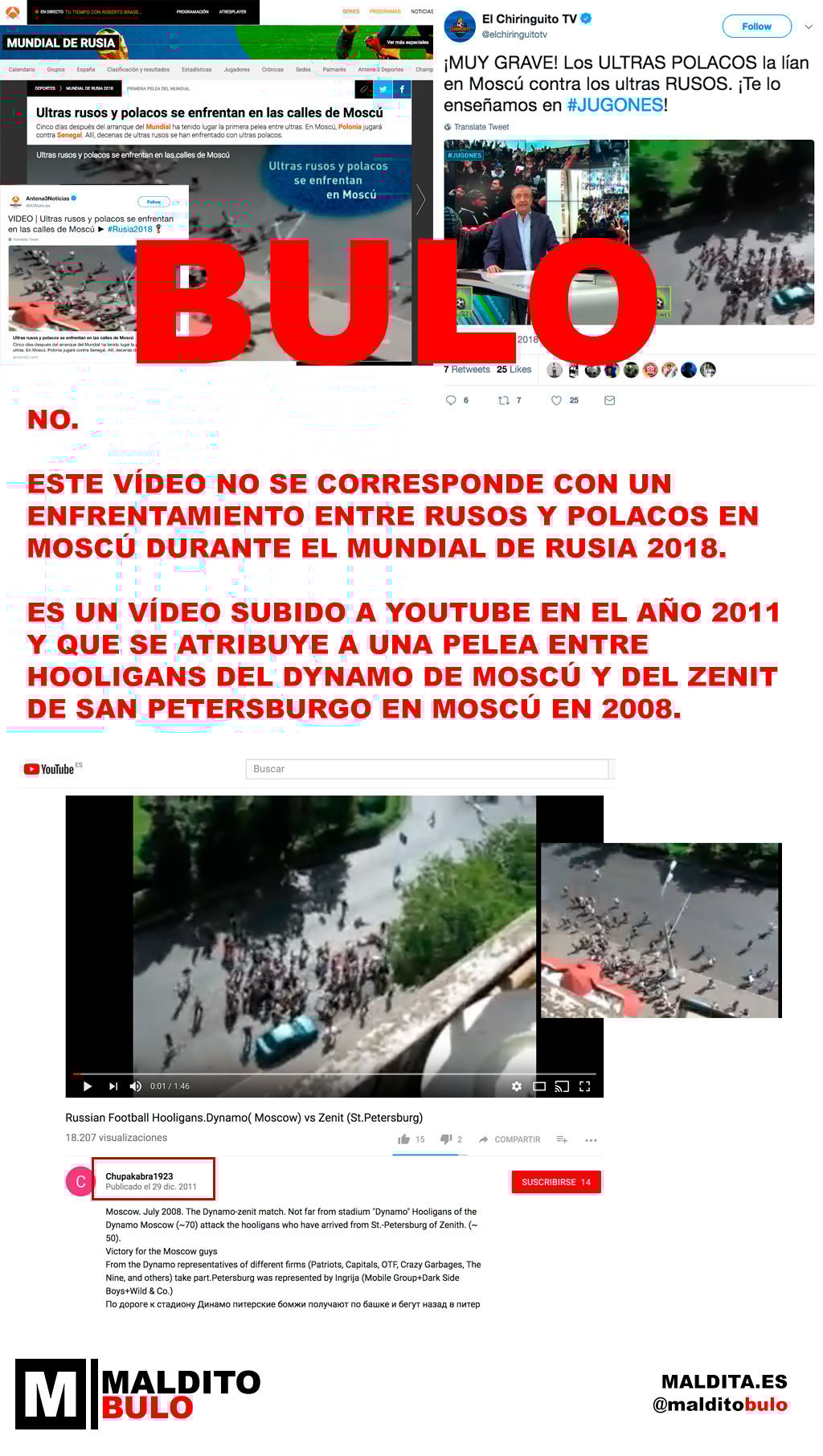 - Es un vídeo subido a Youtube en 2011 y que se atribuye a una pelea entre hooligans del Dynamo de Moscú y el Zenit de San Petersburgo, en Moscú, en 2008.
